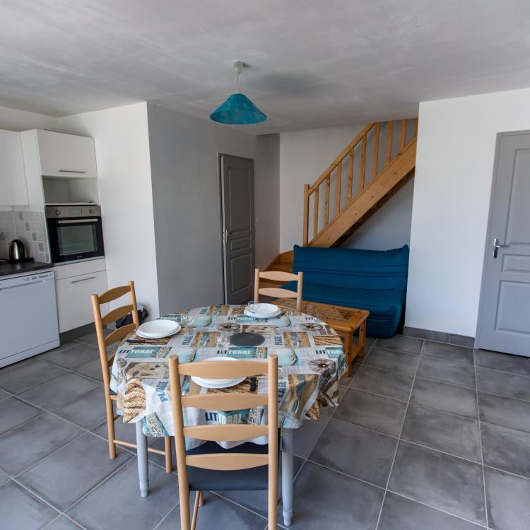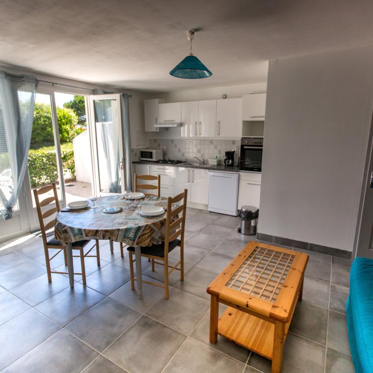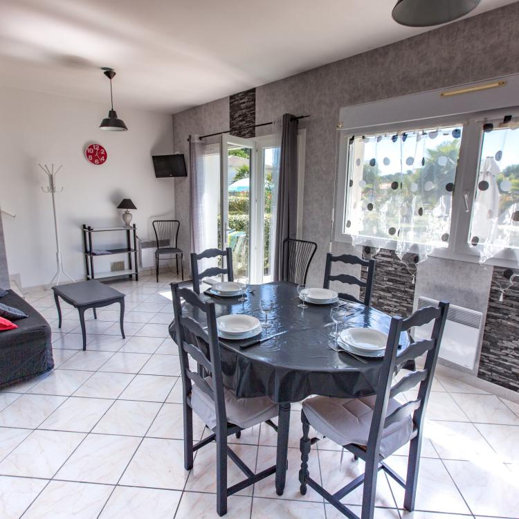 Les villas T3 – 4/6 personnes de 70 m2 environ comprennent : 1 séjour avec Clic clac ou BZ pour 2 personnes, deux chambres pour 2 personnes chacune, 1 salle de bain avec douche et WC + 1 WC indépendant (à l’étage) – cuisine aménagée avec four, micro-onde, lave-vaisselle, plaques feux gaz et hôte aspirante, réfrigérateur congélateur, tv, table et chaises, vaisselle pour 4/6 personnes