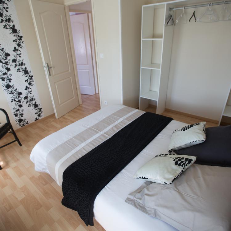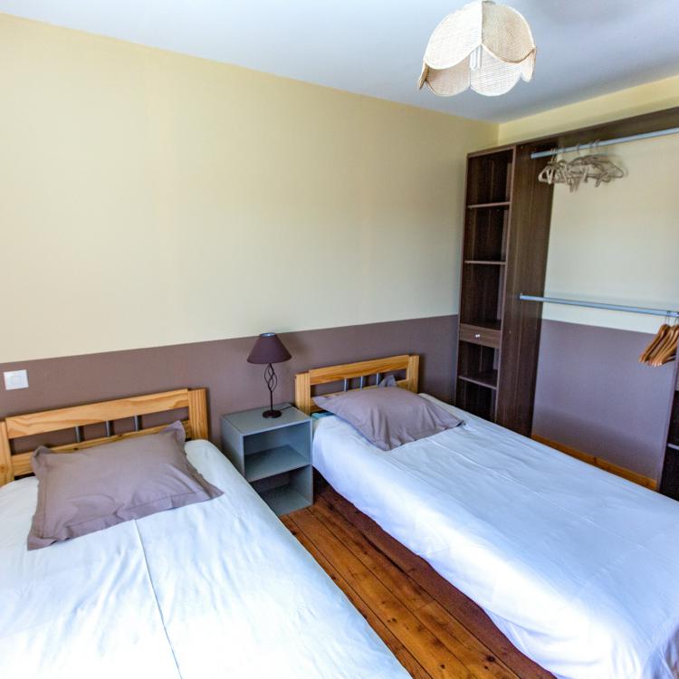 A l’étage : 1 chambre avec 1 lit 140 ou bien 1 lit en 180, et une chambre avec 2 lits 90, rangement, X.