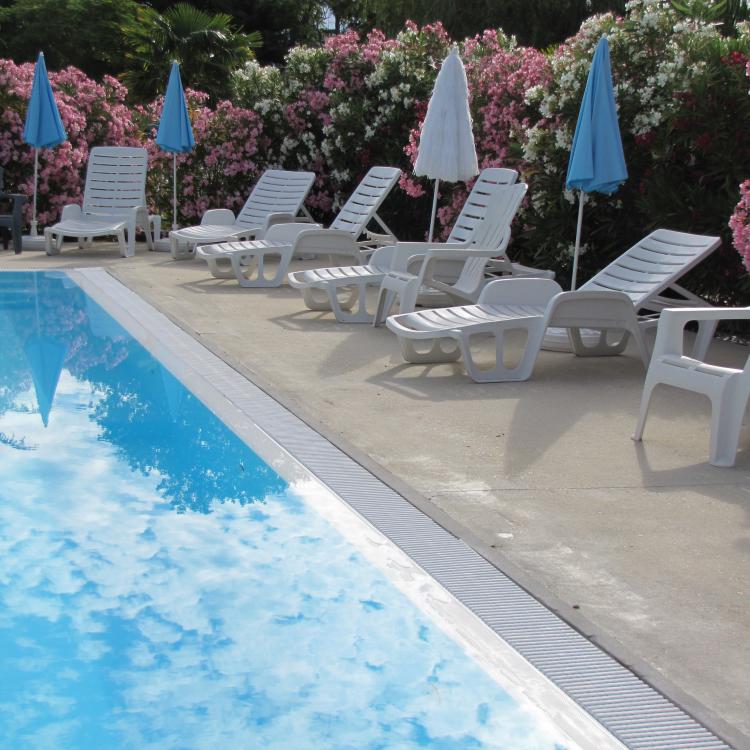 Piscine chauffée à 28 °, transats et parasols (ouverte du 15 juin au 15 septembre)